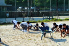 4月 生徒会オリエンテーションの様子 ボランチの様子 グラウンドの清掃をしています